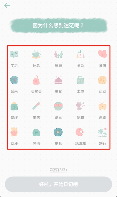 4、随后挑选当日的心情状态,像愉悦、难过、愤怒之类的。