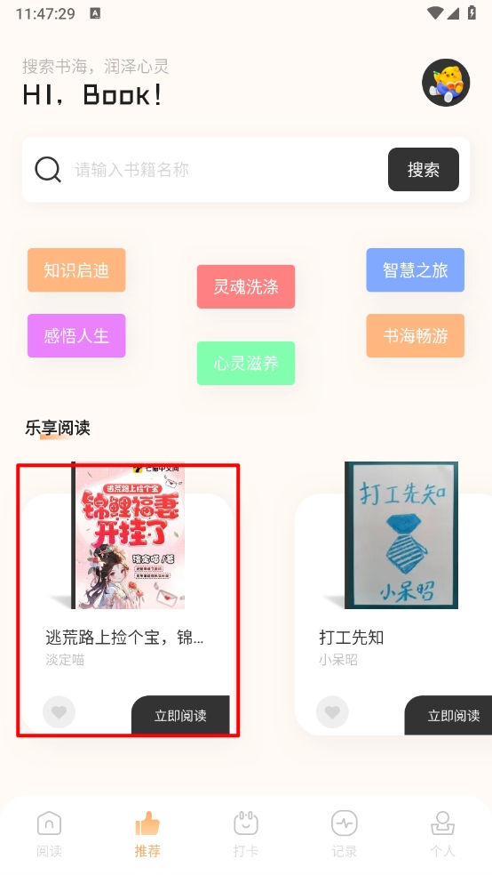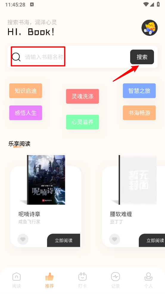 2、进入主页,滑动选择或直接搜索喜欢的小说资源。