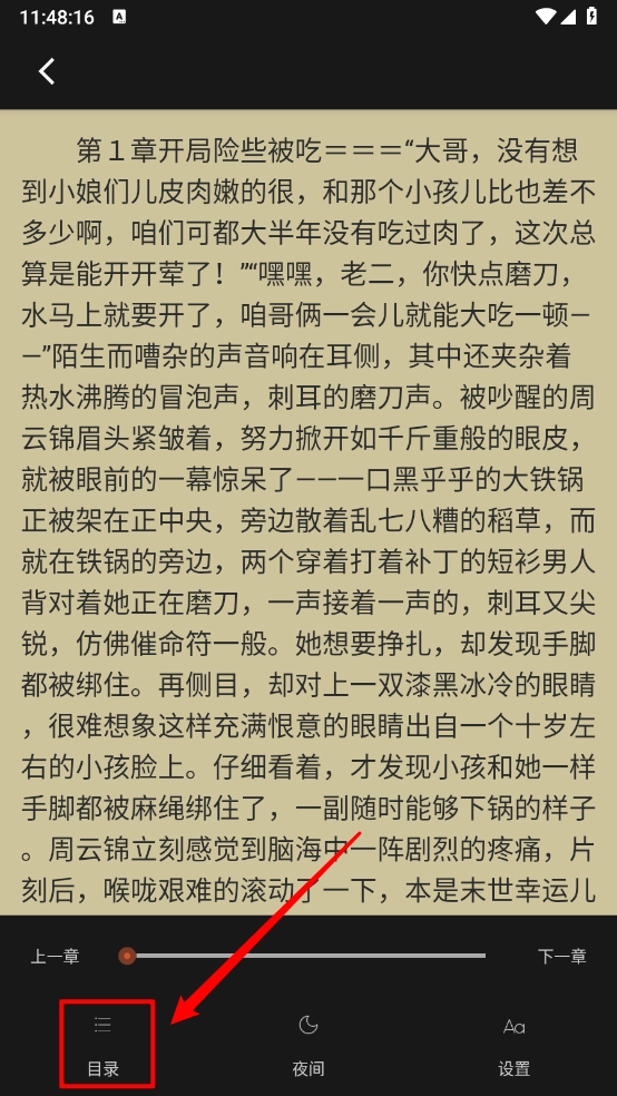2、点击“立即阅读”进入阅读界面,呼出菜单后点击右下角的“目录”选项。