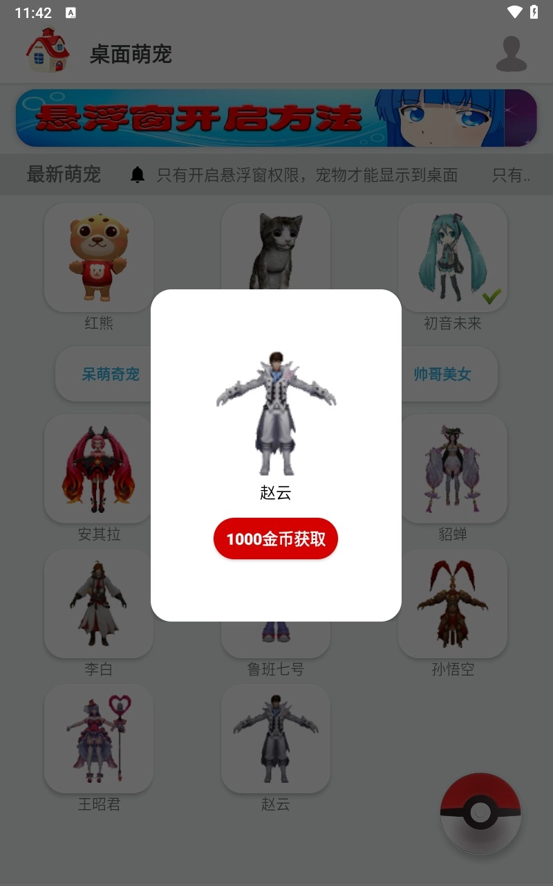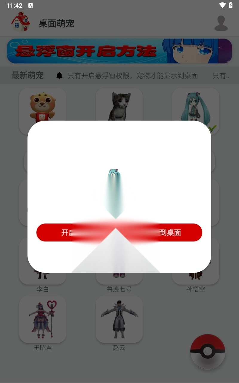 2、只需挑选自己喜爱的角色进行设置,一只可爱的宠物便会出现在你的桌面上。你还能与这些萌萌的宠物互动玩耍。