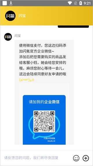 2、若需要使用微信支付,您可以添加闪氪企业微信客服,把购买商品的相关信息发送给客服,客服会为您提供微信支付的渠道。