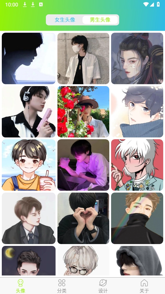 在“头像”与“分类”板块中,集结了种类极为丰富的头像类型,涵盖了女生头像和男生头像等多种类别。
