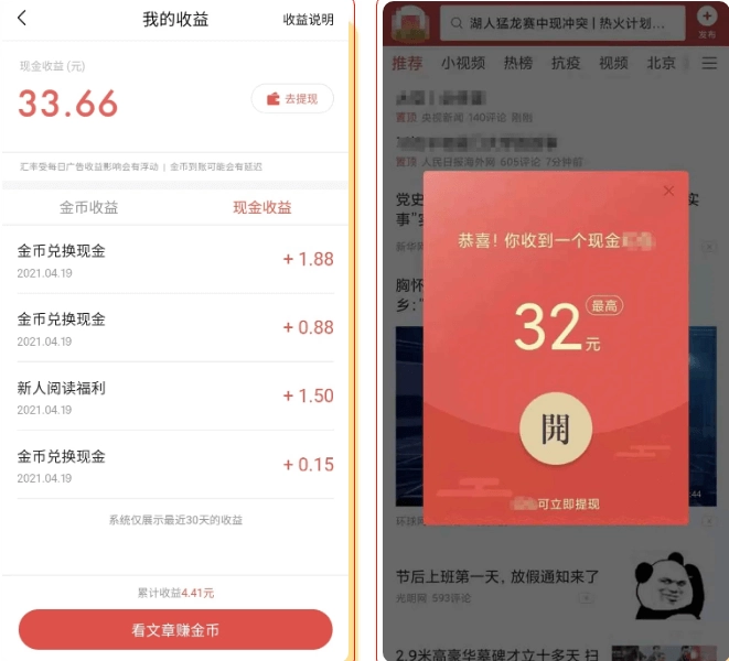 赚金币兑现金