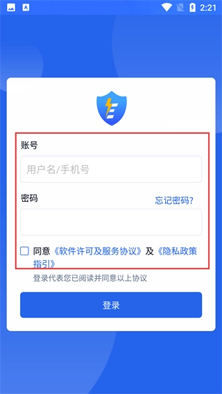 进入登录界面后,要在账号栏填写【用户名/手机号】,在密码栏输入对应的密码,并且勾选同意相关协议,之后点击【登录】按钮。