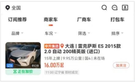 5、车辆被划分为报价、可拍卖等各个阶段,用户能够对车辆进行报价;当拍卖开始后便进入拍卖阶段,此时买家可以自由加价。
