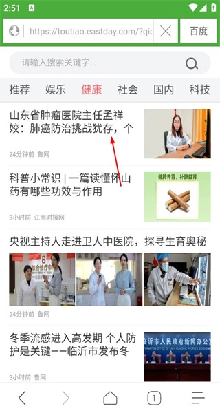 2、进入资讯页面后,点击健康分类标签,查看该分类下的医疗科普等资讯文章,并浏览相关内容信息。