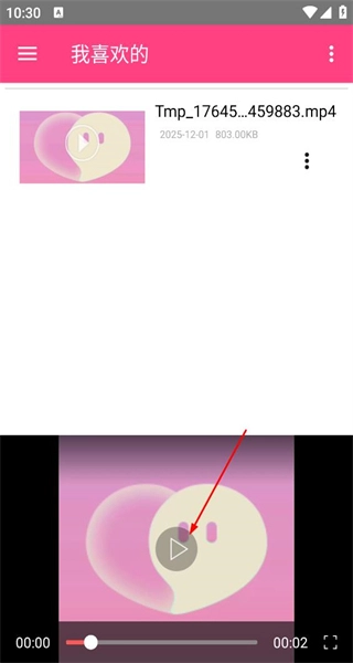 4、进入“我喜欢”的页面,找到已经添加的视频,点击视频上的播放按钮,即可开始播放该视频的内容。