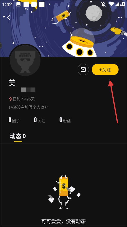 4、进入用户主页,点击【+关注】按钮,即可完成对该用户的关注操作。