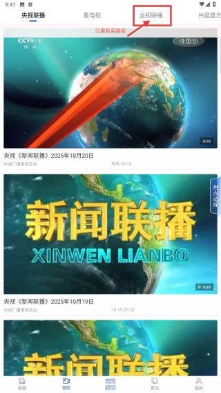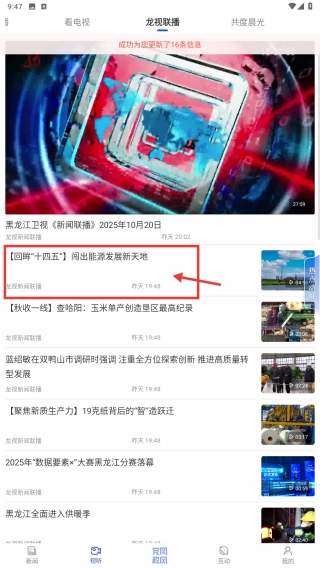 在视听板块中,找到并点击“龙视联播”标签,即可进入龙视联播的新闻列表页面。