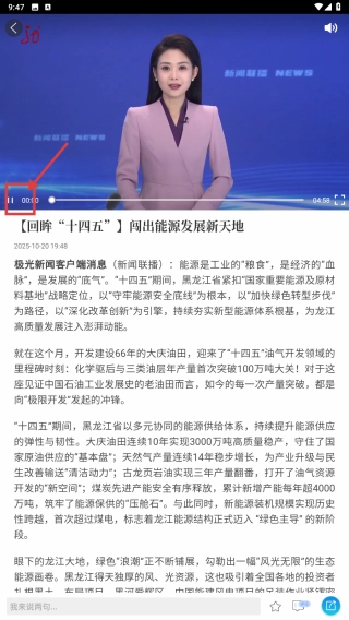 4、在新闻播放页面,点击播放界面上的暂停/播放、进度条等相关控制按钮,即可观看对应时间点的新闻内容。