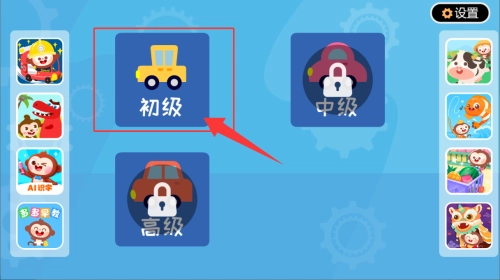 1、打开多多认车标,先从初级来让宝宝学习;