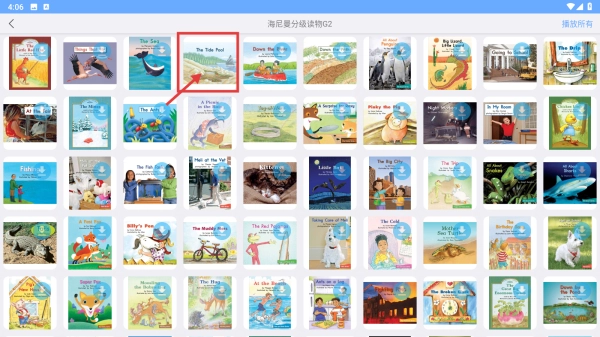 2、在绘本列表里,找到并选中The-Tide-Pool这本绘本,点击它就能进入阅读页面。