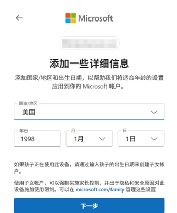 5.添加详细信息时,地区选美国,年龄大于18岁;