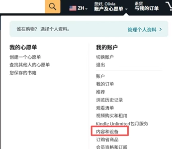1.进入并登录你的亚马逊中国账号,随后点击“管理我的内容和设备”选项。