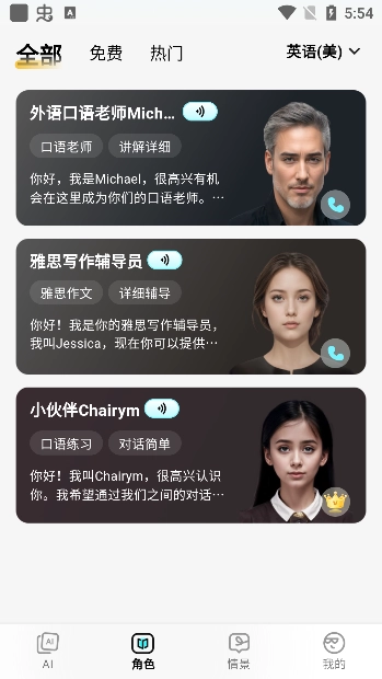 多场景适用:涵盖日常交流、旅行问路、学术讨论等300+真实场景,支持免费体验,还能解锁专业场景。