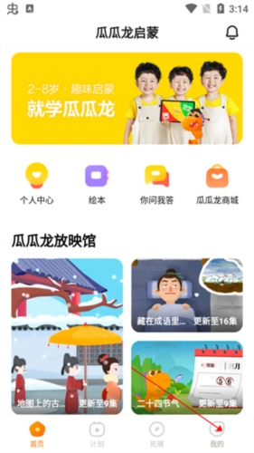 在瓜瓜龙启蒙右下角点击我的。