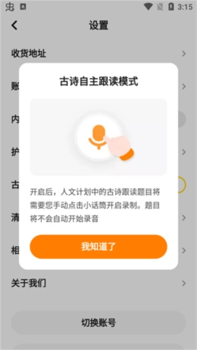 3、点击自主跟读模式