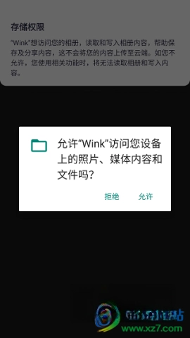 2、应用程序会弹出数据存储权限的提示,阅读相关内容后选择允许。