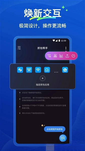 抓包帮手是一个可以抓取网页来进行精准分析的数据传输类安卓手机软件,围绕数据包捕获、解析与管理展开,支持自定义规则精准拦截或绕行指定域名。软件通过对流量结构的可视化分析,可有效识别无效请求、优化网络结构并提升整体网络使用效率。