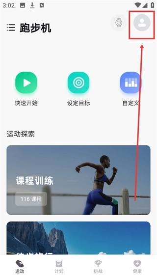 1、在跑步机页面点击右上角的【我的】图标,就能进入个人中心。