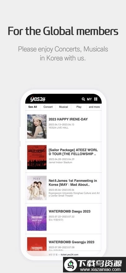 yes24 ticket是韩国颇具规模的票务服务平台,主要为粉丝提供偶像演唱会门票、周边以及主题服饰等产品的购买途径。平台不仅确保所售商品均为正品,还会经常推出优惠活动,让喜爱韩流文化的用户能更安心、便捷地买到自己需要的物品。如果您对此也感兴趣,欢迎在本站进行体验。