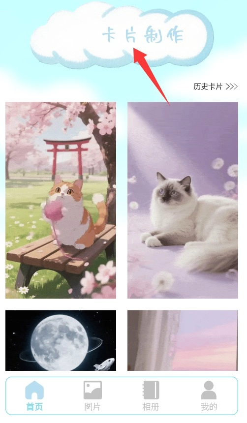 2、首页提供卡片制作功能,支持用户快速创建个性化卡片。