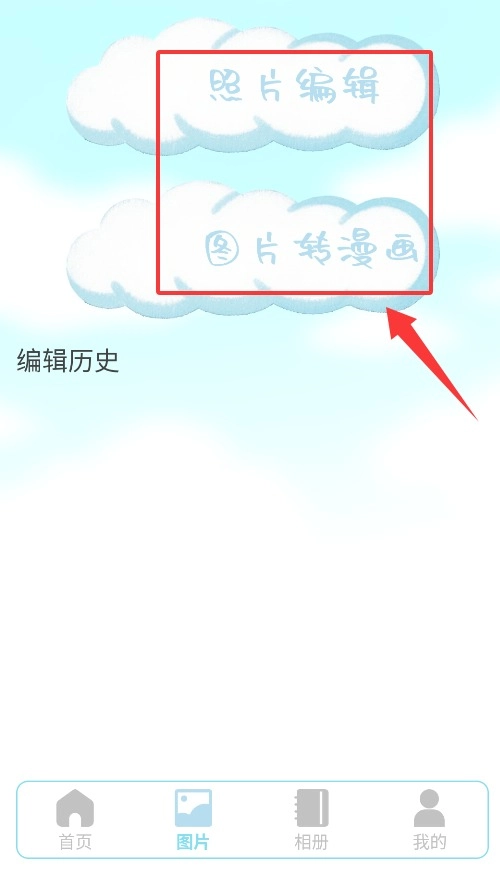 3、图片编辑页面包含照片美化、图片转漫画等多种图像处理工具。
