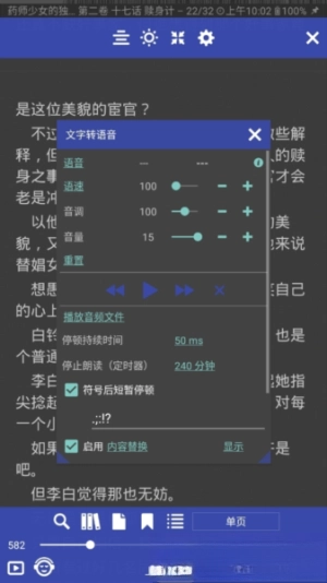 6. 点击左下角可实现文字转语音功能,进而开启听书模式,不过这需要你的手机已安装并支持TTS语音引擎。
