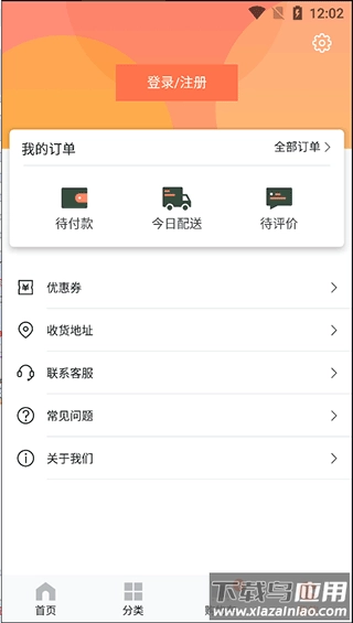 3、在“我的”页面完成注册登录后,就能查看订单记录和收藏的商品了。