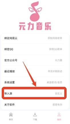 2、在我的个人主页选择“导入源”。
