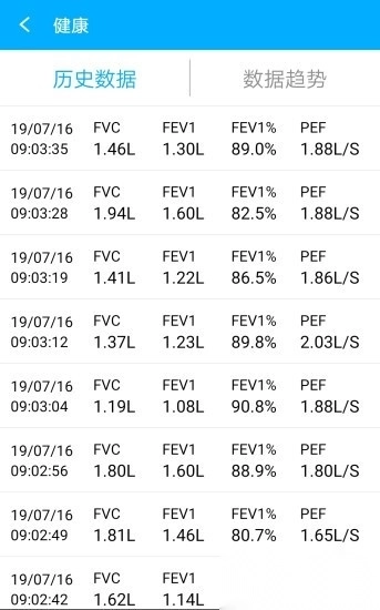 2、专业肺功能数据分析模块,可实现多维度参数对比与历史记录查询功能;
