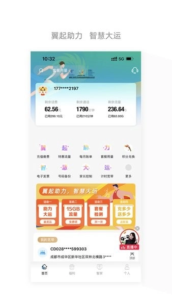 这是四川电信的移动端平台入口,具备话费充值、流量包办理、积分兑换等核心功能;同时提供宽带新装续费、套餐余量查询等实用服务,是四川电信用户日常使用的必备工具。